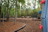 The Village of Grogan's Mill was the first of all of The Woodlands villages to be founded in the 1970s and is now the home of over 12,000 residents and 5,000 homes. Eventually to become a part of The Woodlands' Historic District, the original neighborhood is nestled in a forest of towering trees and is home to many parks, such as Sawmill Park, which includes a swimming pool. Grogan's Mill is the home of The Woodlands Resort & Conference Center, which hosts a double helix water slide, a number of swimming pools, and a wide variety of restaurants, including The Golden Mile and the Blue Water Cafe. The Woodlands Country Club is also located in Grogan's Mill. Three golf courses can be found in the village, The Tournament Course, a part of The Woodlands Country Club, and daily fee courses, The Oaks and The Panther Trail Course. The Grogan's Mill Village Center is host to a large variety of restaurants including Chef Chans Chinese Restaurant, Beck's Prime, and Fuddrucker's. A Randall's Supermarket is also located in the heart of the Village.